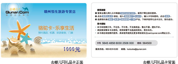 去哪儿礼品卡样品展示